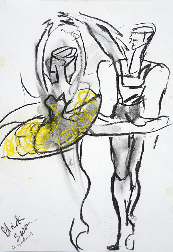 Icons Gala, Coliseum 31.03.2019; Medium - Charcoal & gold pen on A3 paper