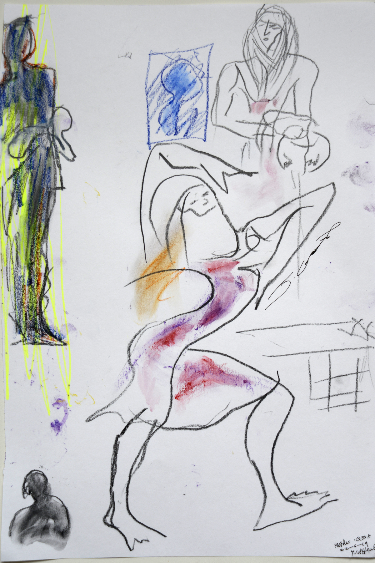 SouthBank Centre 22.06.2019 with Natalia Osipova; Charcoal & pastel on A4 paper