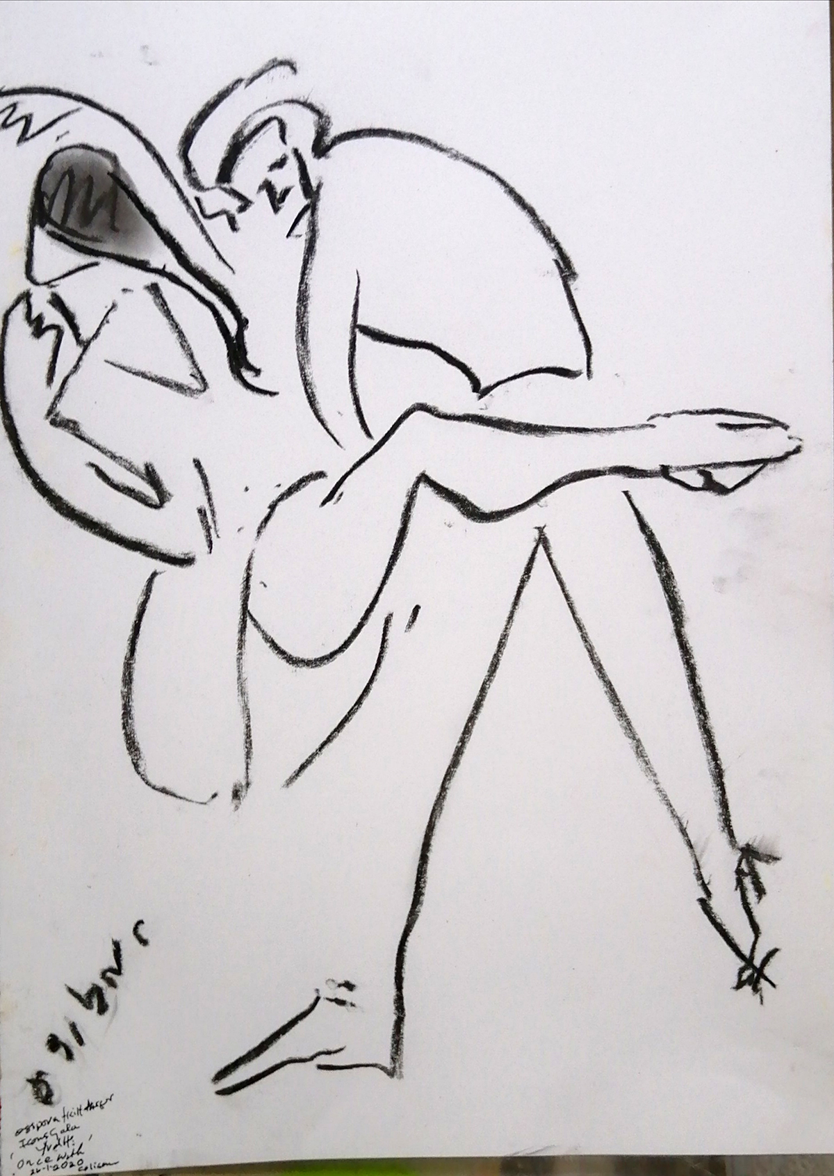 Title: 'Once With', Icons Gala. Date - 26.01.2020 London Coliseum; Size - A4; Medium - Charcoal on card; Signed by Natalia Osipova