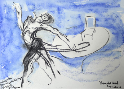 Title: Tribute to Nureyev, Adagietto 2010; Medium: Charcoal and water-colour crayon on paper; Size: A4