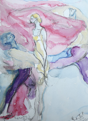 Title: Tribute to Pavlova, Romeo and Juliet 2012; Medium: Graphite and water-colour crayon on paper; Size: A4