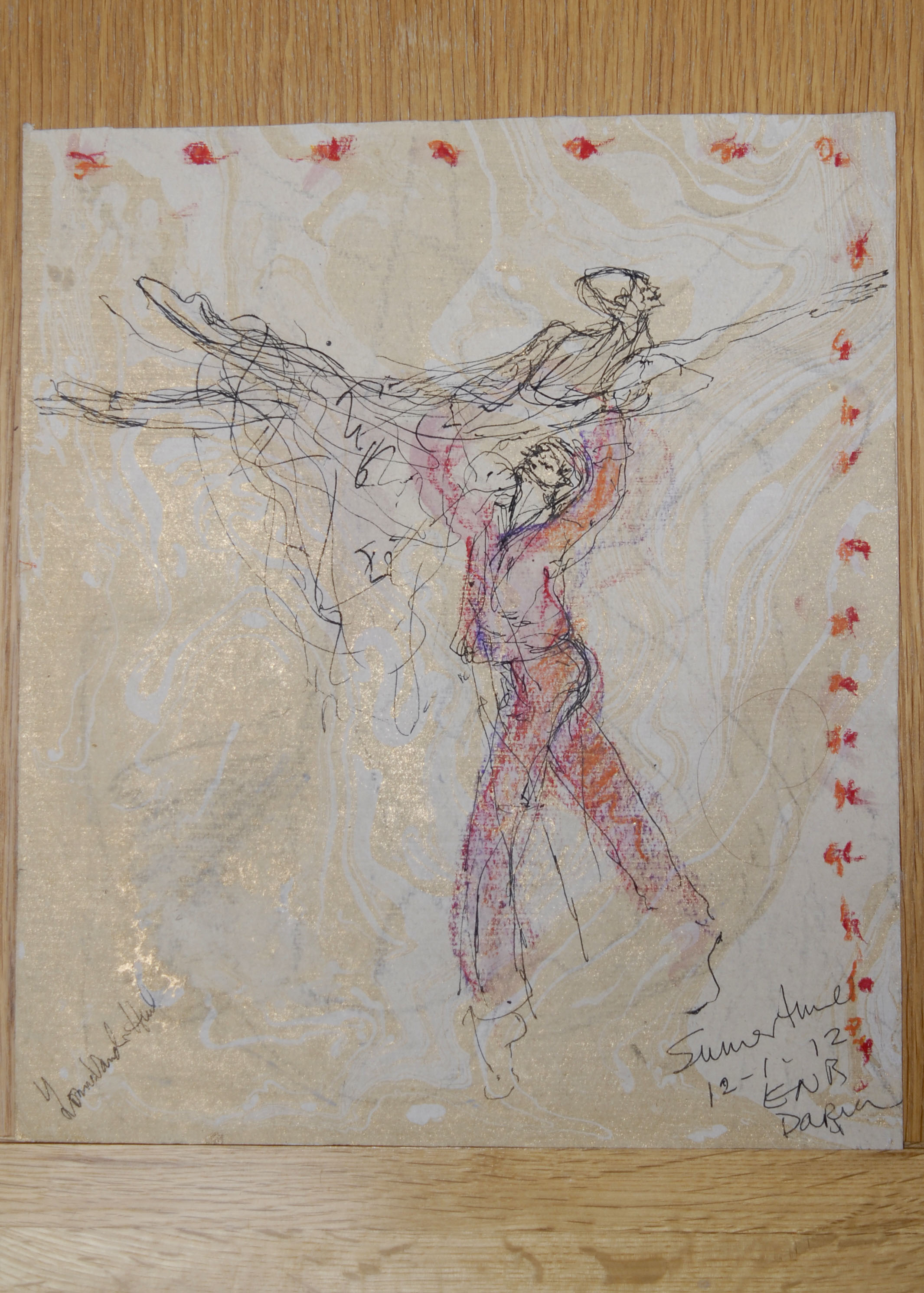 Title - Summertime with Daria Klementova & Vadim Montegirov 12/01/2012 ; Medium - Black ink & watercolour crayon on paper; Size - 32 x 27 cm; Price - Sold; Catalogue no B30