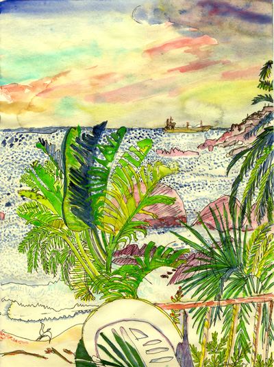 Black ink and watercolour drawing, Western Cape, South Africa May 2005 28cm x 21cm Catalogue No C56
